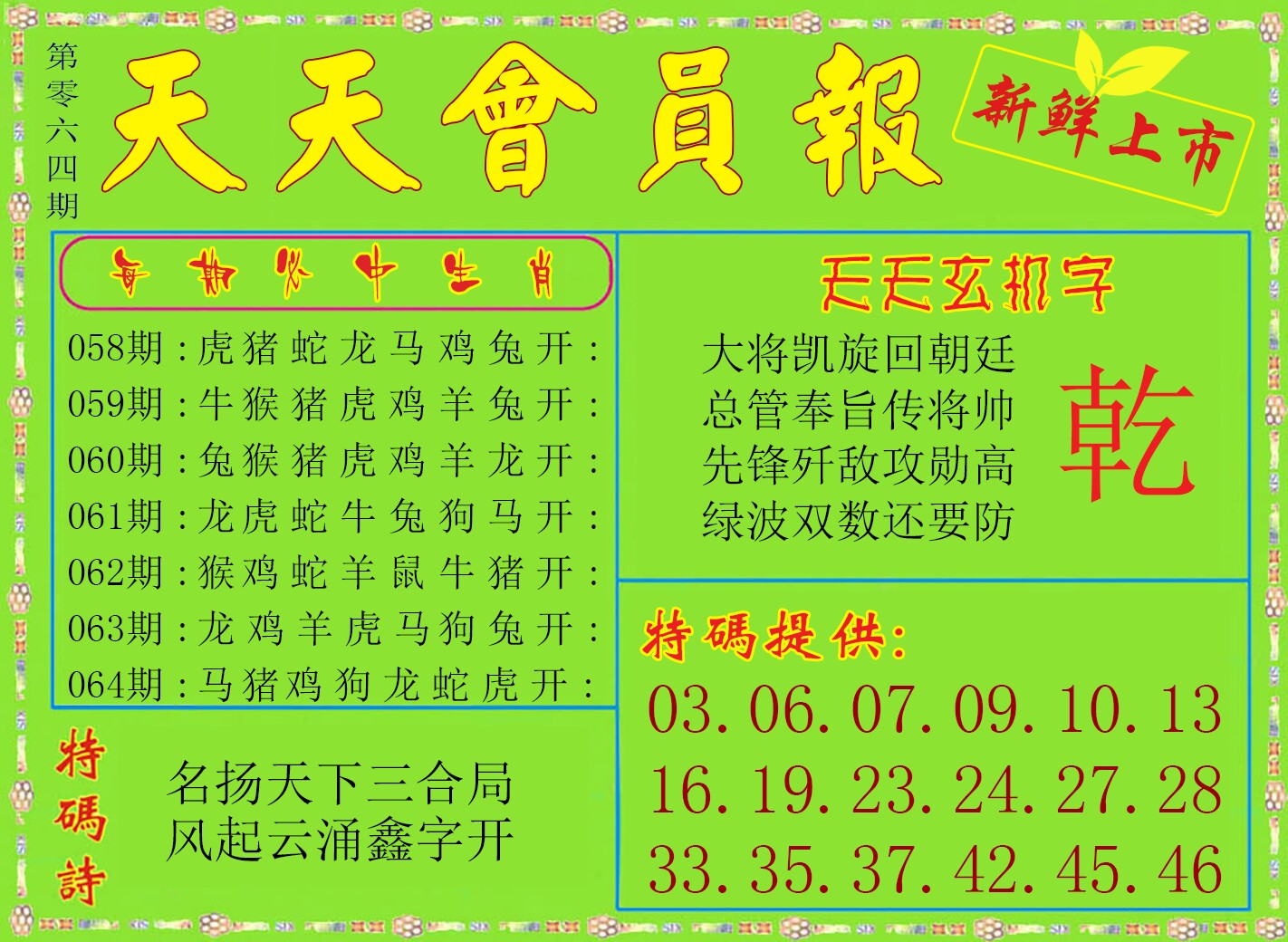 | 064期:二组三连肖【猪鸡】【狗猴马】 |