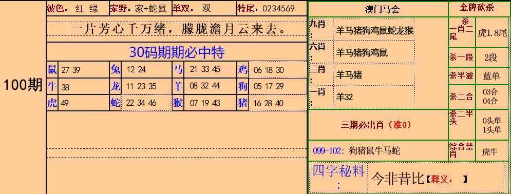100期单双中特【野兽+蛇虎猴猪】?00 |