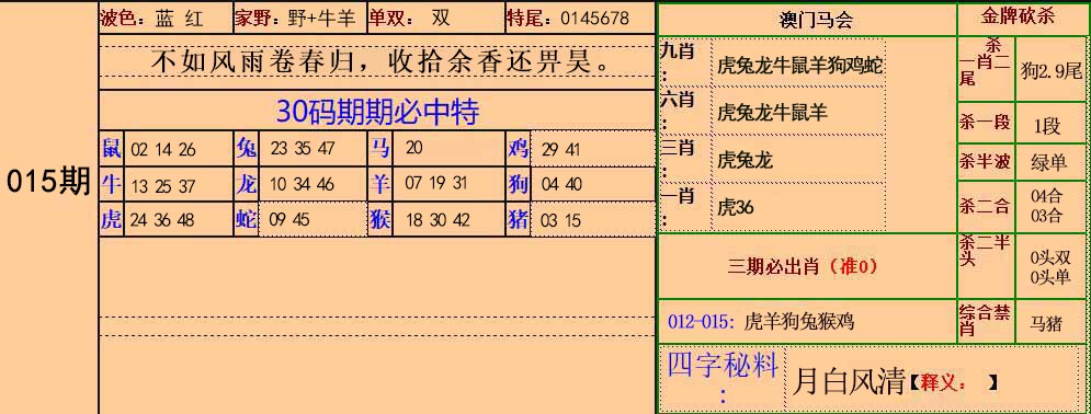 015期单双中特【家禽+虎猪羊龙】?00 |